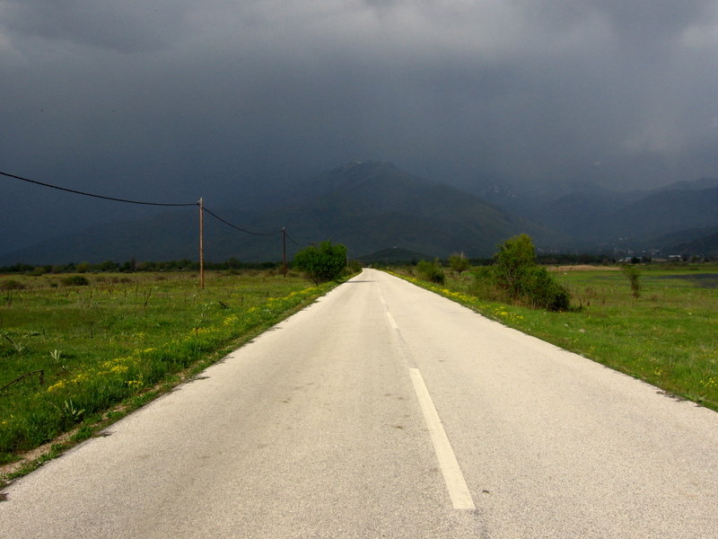 Storm clouds budded in purple swells above the mountains as we levelled out onto the plain. While the isthmus burned with the slanting sun, the wing mirrors told another story. There we glimpsed the piled-up sky raging with winds as we raced away.