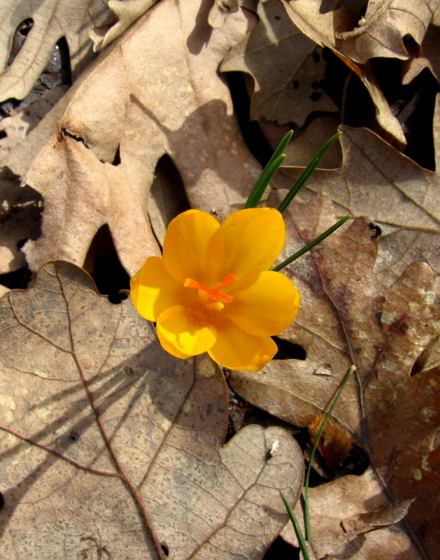 A lizard skitters madly along the wall, darting over the stones as if they were coals. Crocuses purple the dark earth and water runs as if in a race, unlocked from snow and ice to stream down the mountains and pour as a river into the lake. Tree sparrows fumble in the branches of the quince, shuttling old leaves and grasses, sometimes shiny candy wrappers dropped by kids, to furnish a nest in a stone cranny of the house. Pale green shoots are spearing through the ground. You look down to see you’re standing on a new season.