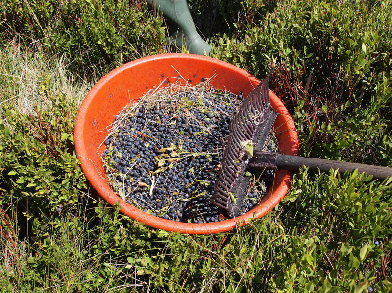 Employing close-tined hand rakes, the boys bent over the tangled mat of plants to rake the berries into their bowls, moving up and down the slopes. The berries came free remarkably easily, carrying with them only a small amount of leaf and stem. But it was slow work; the berries too small to amount to anything very quickly.