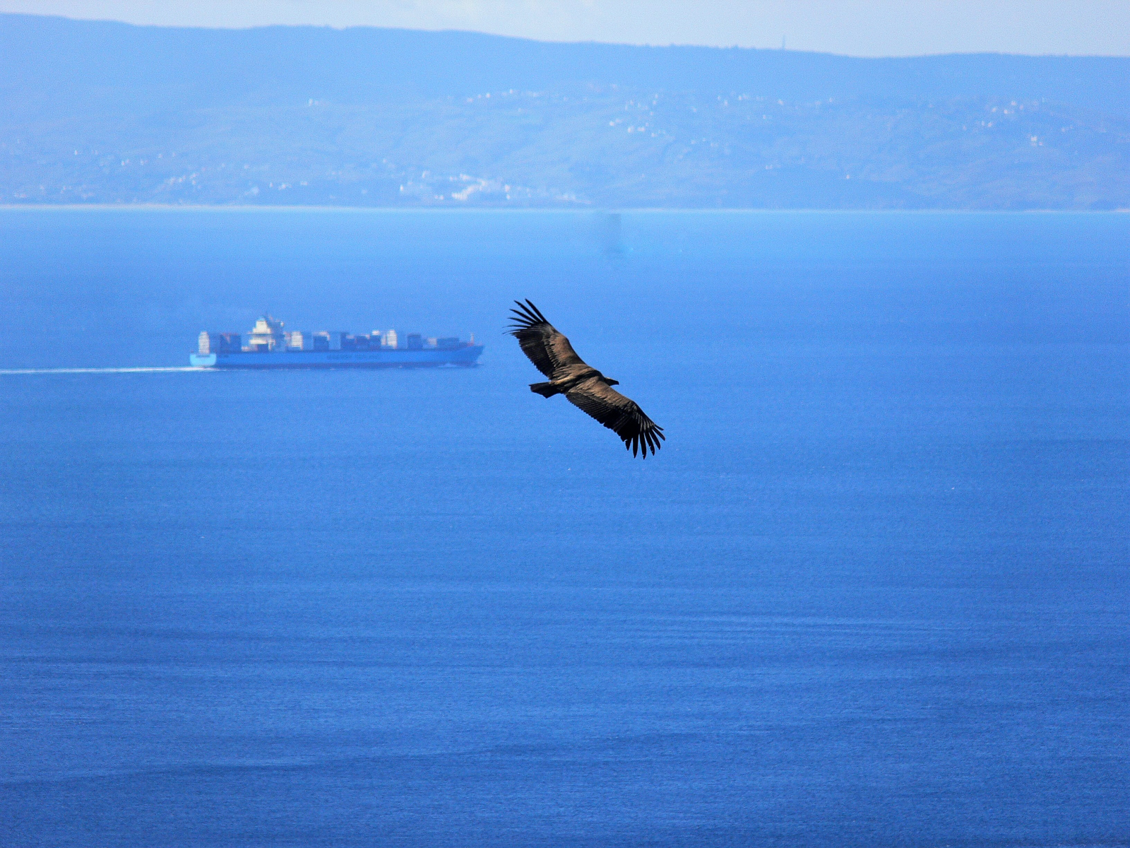 Where Spain shelves into the sea at the most southerly tip of continental Europe only fourteen kilometres of water separate it from North Africa. Through the late summer haze you can see the buckled beginnings of Morocco’s Rif Mountains, towering over the glittering blue span of the Strait of Gibraltar. And with that landmass in mind, vast numbers of migrating birds gather over these last arid hills of Andalucía, part way through journeys that could eventually take them as far as South Africa. Silhouetted against the scorching sun, black storks glide on trembling feathers above the strait; colossal griffon vultures float past like arks on a sea of air; and short-toed eagles coil upwards in the blustery winds pelting out of the east, their pale wings flickering while black kites wheel over the shimmering earth.