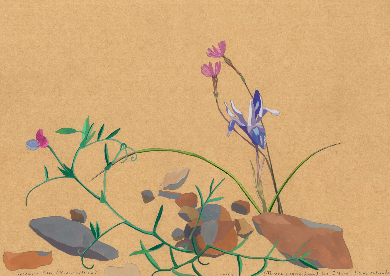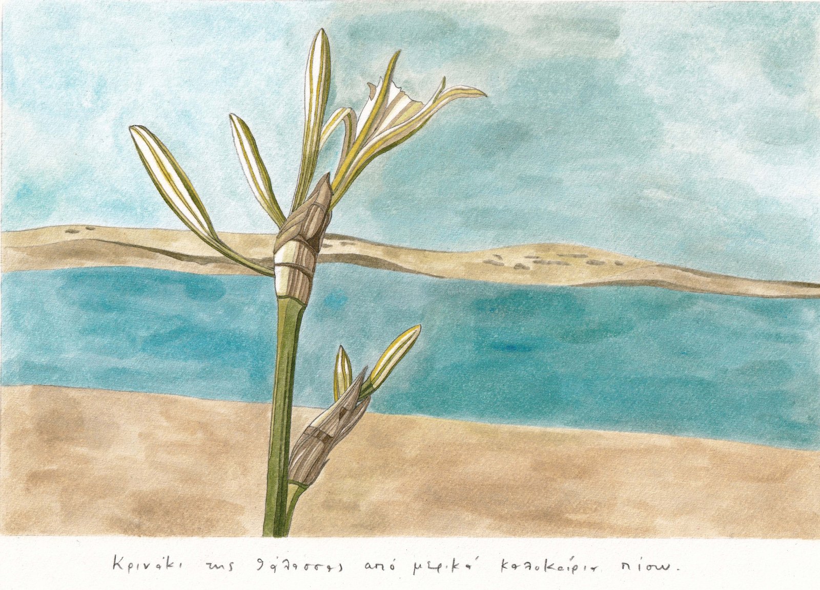 I first met Matina Galati in a grove of extraordinary juniper trees on a limestone mountain above the Prespa lakes where I live in northern Greece. That day, I’d been walking with the Hungarian gardener and botanist Máté Tálas and two friends of his when Matina arrived from Athens to join the group for the rest of their trip. She and Máté had worked together in the Mediterranean garden of Sparoza outside of Athens and shared a keen interest in exploring the landscapes and plants of the wider Balkans. While we ate a picnic lunch together in the juniper grove, where several of the ancient trees had taken on unusual and impressive shapes over the centuries in response to fires and storms and snow, Matina told me a little about her work as a gardener and illustrator at Sparoza, where she sometimes hosted workshops in botanical painting, before I eventually said goodbye to the group and let them continue on their journey.