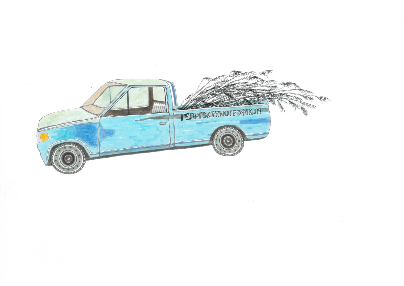 Matina: Knowing from the start that full colour illustrations weren’t an option in our case, I shifted my focus elsewhere. For the map, I aimed to highlight the topography and the interaction of the characters within it and its various landmarks. For the illustrations, composition played a vital role, as well as communicating certain concepts that are prevalent themes in your book. The result, I like to believe, are tender portraits of all these elements: the co-existence of the two primary juniper species in the juniper grove (Juniperus excelsa and Juniperus foetidissima), the entangled positioning of the bee-eaters on the branch of a wild almond tree, conveying the shifting of the seasons and, finally, the Dalmatian pelican resting on the fisherman’s boat, signifying the shared nature of this landscape.
